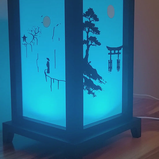 Oriental LED Lantern Lamp | USB RGB 3D Printed Table Light | Customizable Panels | Korean-Inspired Décor