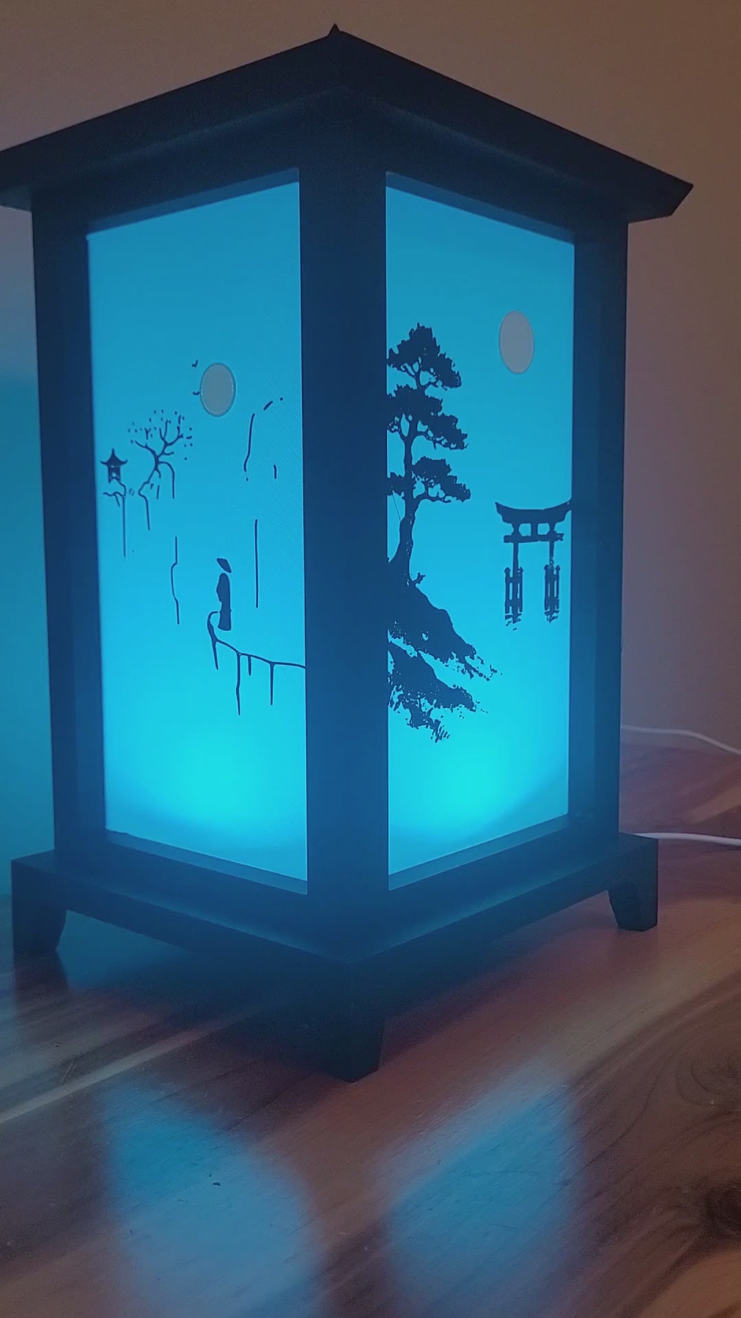 Designed to resemble an ancient Korean-style lantern, this lamp blends history with modern technology. The soft glow shines through four interchangeable panels, each featuring artistic silhouettes that evoke peace, balance, and nature. Perfect for bedrooms, meditation spaces, living rooms, or as a meaningful gift.
